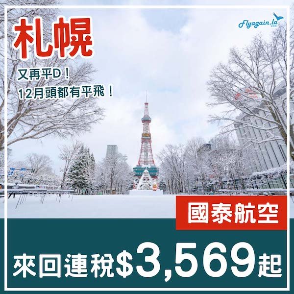 【札幌】直航又再平咗!12月都有啦!國泰航空來回札幌連稅$3,569起!8月至12月指定日子出發