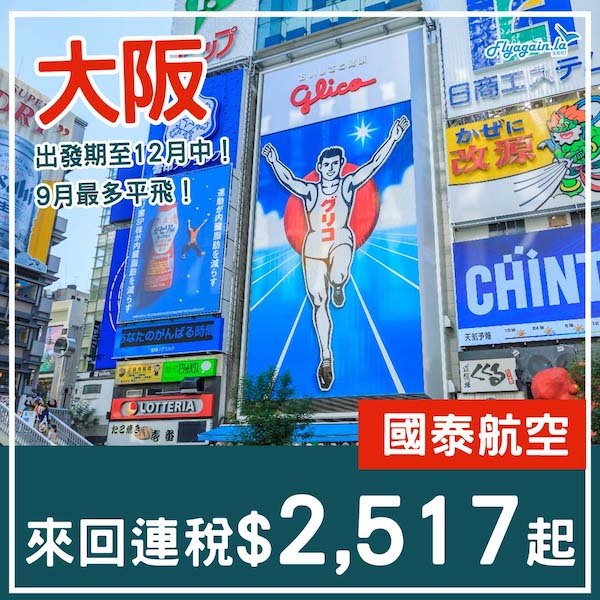 【大阪】9月最多選擇!世博最後衝刺?國泰航空來回大阪連稅$2,517起!8月尾至12月中出發