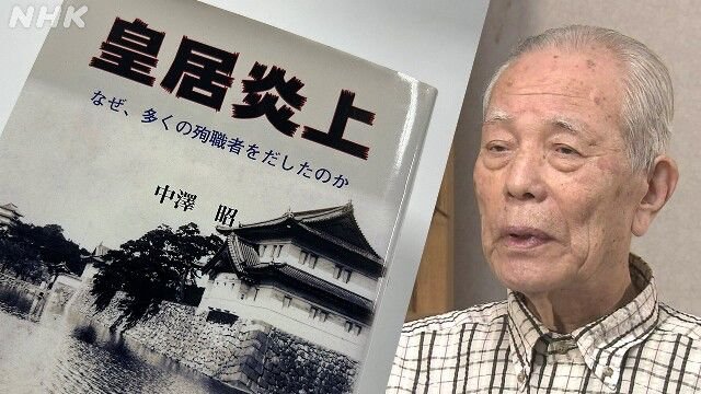 元近衛兵平塚基一在NHK檔案回憶:「火勢太猛,水潑下去變熱氣!我跟弟兄們衝進宮殿搶救文物,搬桌子、捲地毯,第三次進去差點燒死,趕緊爬出來!」