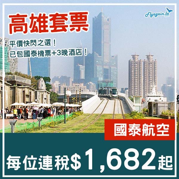 【高雄】平價快閃之選!高雄4日3夜套票,包國泰機票+3晚酒店,每位連稅$1,682起!9月至11月指定日子出發