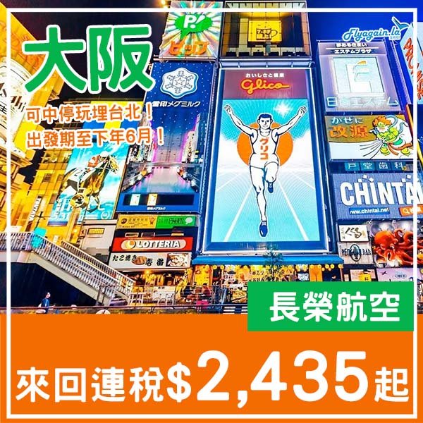 【大阪】特長出發期!可中停玩埋台北!長榮航空來回大阪連稅$2,435起!8月至2026年6月指定日子出發