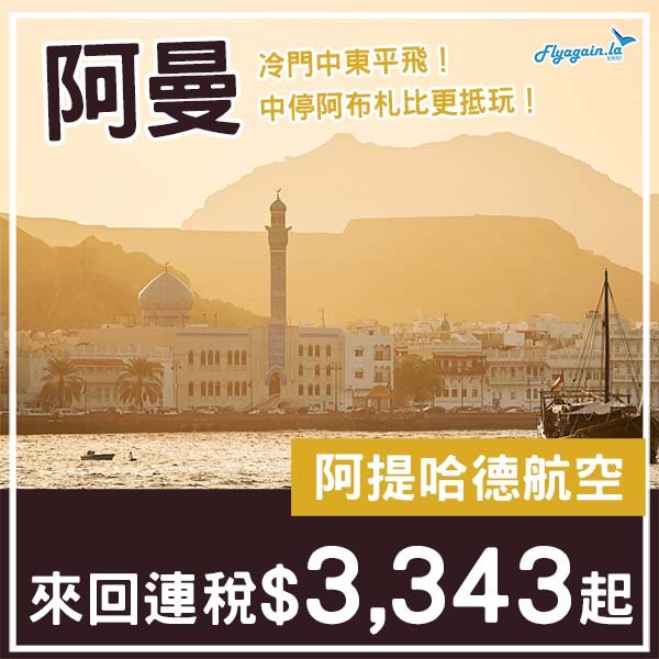 【阿曼】冷門抵飛!中停阿布札比仲要再平啲!阿提哈德航空來回馬斯喀特連稅$3,343起!11月至2026年3月指定日子出發