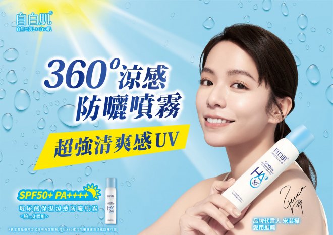 來自知名女星宋芸樺指定推薦!雖然時常需要戶外拍攝工作,芸樺依然擁有白皙透亮的肌膚,到底怎麼辦到的?!芸樺表示: 「我的皮膚比容易曬黑,曬後也容易乾燥不舒服,所以對於防曬的選擇會更加注意。油膩、厚重的 防曬品,是絕對不允許的,自白肌玻尿酸保濕涼感防曬噴霧用起來很清爽又有超高防曬力,出外景 時就不用擔心被曬傷或曬黑,讓我好安心」。