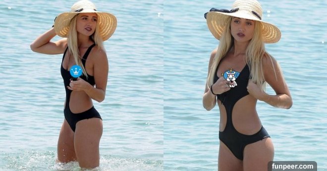 她穿著黑色性感泳衣在西班牙度假