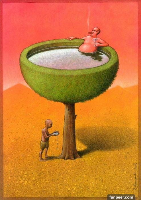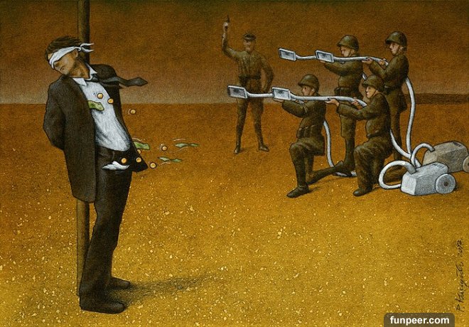 一位來自波蘭的插畫家帕維爾(Pawel Kuczyński),他經常透過自己對現實社會的觀察,用簡單卻又諷刺的強烈個人風格的畫作,畫出了他對這個世界的看法,簡單卻又直白的表達方式讓許多人都很有共鳴!