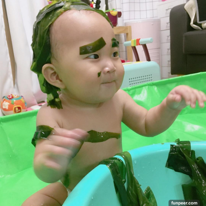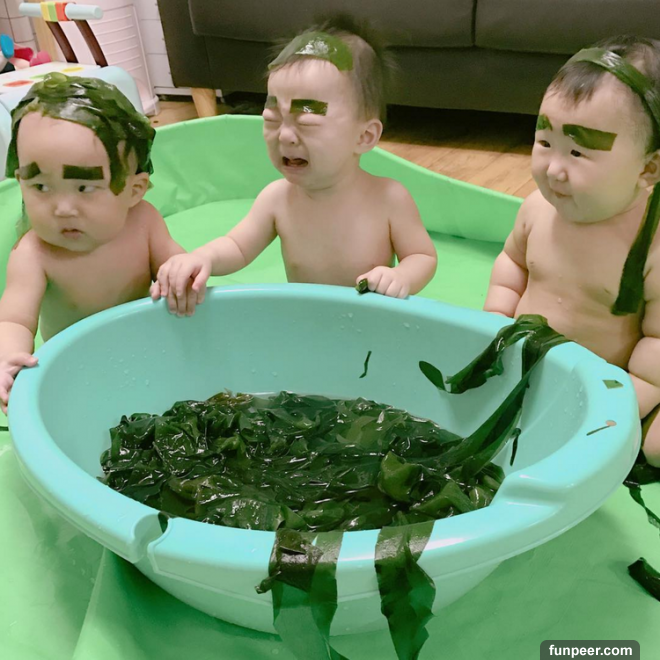 寶寶藍瘦寶寶不說....被媽媽惡搞洗海帶浴 三個娃超呆萌模樣瞬間融化上萬網友