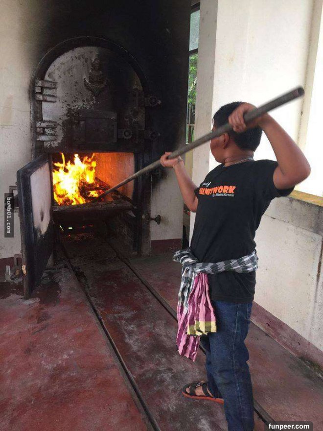 ▼他在殯儀館內負責焚燒死者的相關物品,只見他拿著比自己身高還長的鐵棍,在巨大的火爐內撥動火堆;童稚的臉龐上總是一臉認真,而且從不抱怨辛苦,對他來說,鬼神並不可怕,只怕沒錢幫母親治病。\