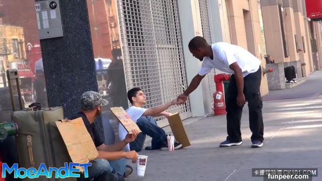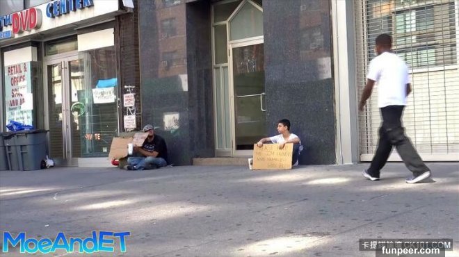 MoeAndET決定做一個社會實驗,他們找來一位少年假扮遊民,坐在這位遊民旁邊乞討,想看看路人們會不會有不同的反應。