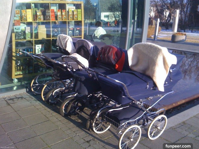 在冰島首都雷克雅維克,不管是繁忙街上或是安靜住宅區,每一間咖啡廳、餐廳、店面外面,都會出現大批嬰兒車停泊的景象,而且沒有任何人在旁邊照看著!