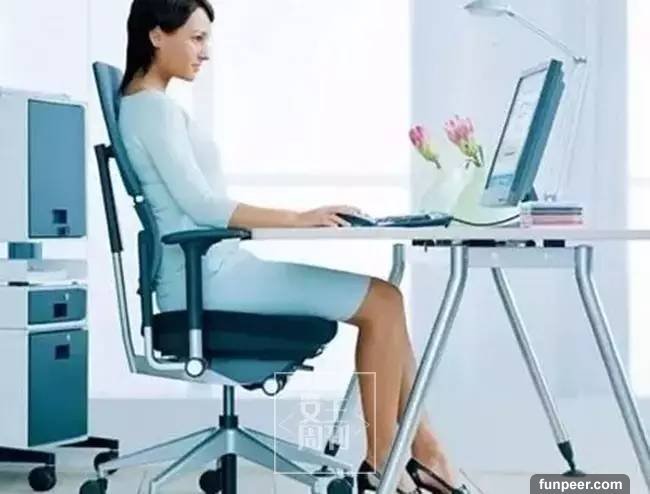 正確坐姿,不但對腰有好處,還能預防頸椎病。平躺時腰椎壓力最小,站立前傾時椎間盤壓力增加了100%。採取上身前傾20度的姿勢久坐,腰椎間盤內的壓力最大,而這正是我們在電腦前經常保持的姿勢。 輕抬肩部,然後緩緩向後、向下舒展上背部略前傾腰背部要有確切支撐骨盆前部略下降有意識保持腹部收緊座椅不可過於柔軟電腦顯示器屏幕距離身體一臂距離前臂與地面平行,且不可懸空膝關節呈90~110 度腳平放,下方加腳墊每30~60 分鐘起身行走或做牽拉運動 少穿高跟鞋