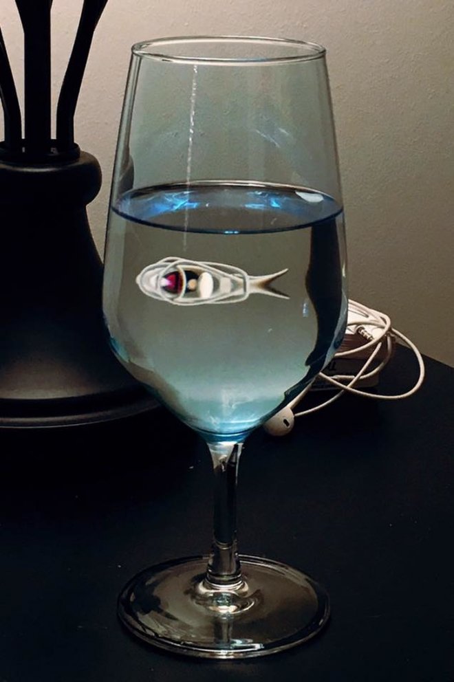 ▼杯子中沒有魚,那是旁邊耳機的倒影。