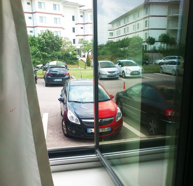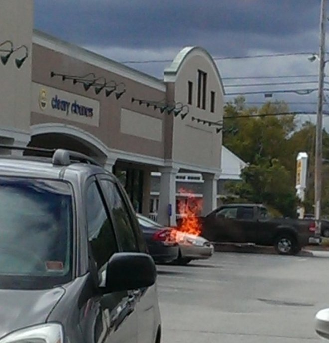 ▼那台車沒有著火,火苗是窗戶玻璃上的倒影。