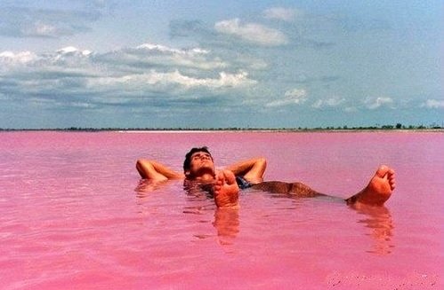▼其湖水中因為富含β-胡蘿蔔素,因此呈現出夢幻甜蜜的粉紅色;另外更含有40%高濃度的鹽分,能像死海一樣,讓人漂浮在湖面上。