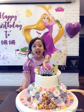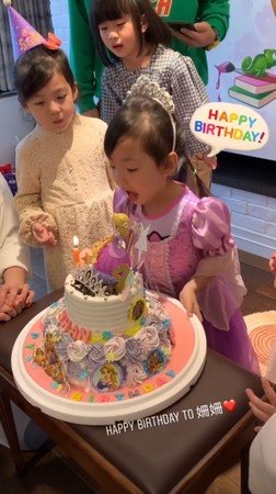 這場生日派對以迪士尼動畫《魔髮奇緣》中的「樂佩公主」為主題布置,牆上掛著印有樂佩公主的生日掛幅,生日蛋糕上也出現公主造型的翻糖裝飾,而壽星姍姍也特地打扮成樂佩公主,在眾人的祝福下吹熄蠟燭,