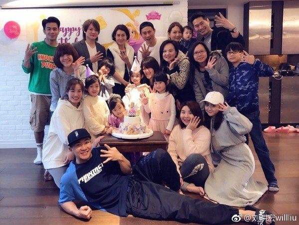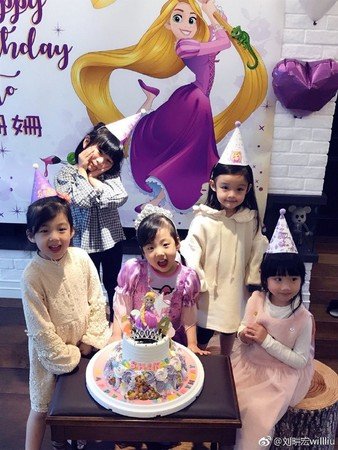 照片中除了小女兒姍姍和姐姐小泡芙之外,F.I.R.吉他手阿沁和老婆花花的女兒「花苞」、郭彥均的女兒「圓圓」和前5566成員小刀(彭康育)女兒也全都在場,儼然是個星二代生日趴~