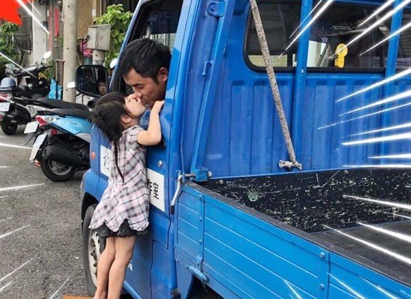 ▼而網友在《爆廢公社》中分享的照片中,可以看到一位綁著辮子的小女孩正墊著腳趴在貨車旁,與駕駛者爸爸甜蜜「吻別」,畫面就與阿翔謝忻那張照片如出一徹,不過這溫馨的畫面卻讓網友們紛紛直呼「超可愛」、「父女日常」、「這小三強,因為沒人敢砲轟她」、「史上最強小三!」