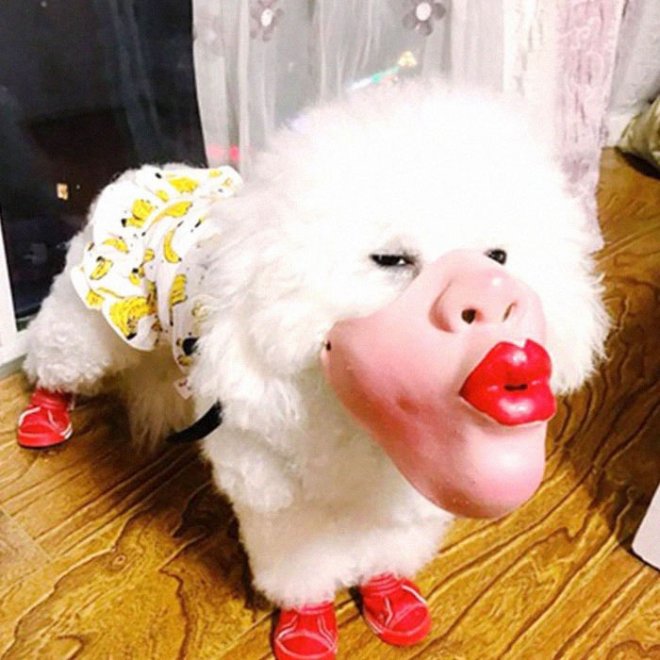 雖然這樣的嘴套看起來有種惡趣味的感覺,不過與狗狗的形象也未免相差太多,加上家裡有小朋友的話,看到可愛的狗狗變成了這個模樣,也許會讓他們嚇到晚上做噩夢吧!