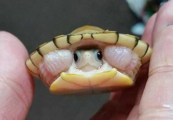 ▼小烏龜戴著一頂迷你帽子。