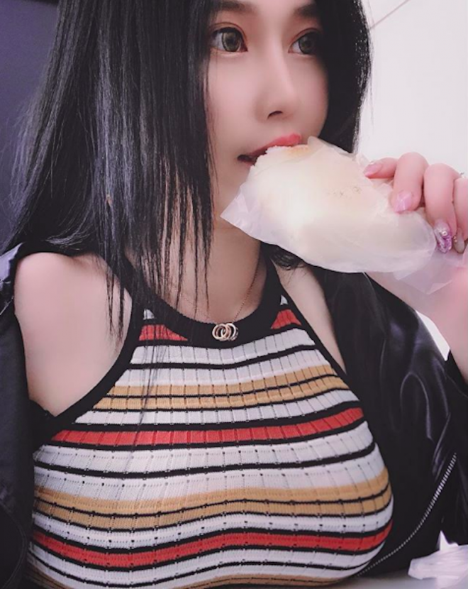 娃娃平時就很樂於分享生活,吃個早餐也不忘拍照給粉絲品香,但讓人注目的果然還是包裹在小背心下形狀突出的大長輩啦,可能是負擔太大直接放桌上呢!