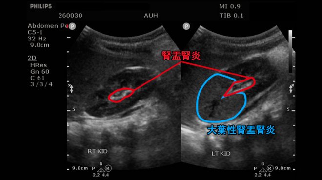 安排腎臟超音波檢查發現雙側腎盂腎及左腎前端實質發炎,留取尿液培養後確診為大腸桿菌引起的左側「急性大葉性腎盂腎炎」及雙側「急性腎盂腎炎」,經靜脈注射抗生素治療7天後才順利出院,但因為大葉性腎盂腎炎屬較嚴重的泌尿道感染,出院後仍需持續使用有效的抗生素治療3周以上。