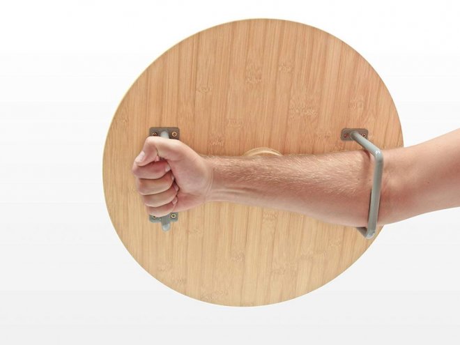 ▼原來這款床邊桌,竟然是由一個盾牌和球棒所組合而成的!當發生經濟狀況時,只要將床邊桌分解開來,手上瞬間就有了防身神器!