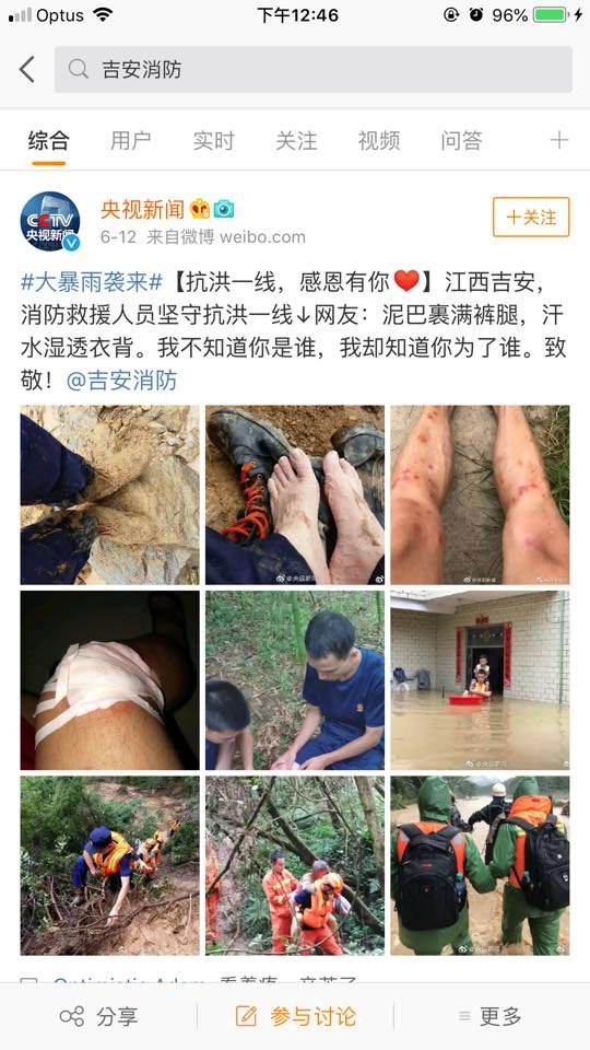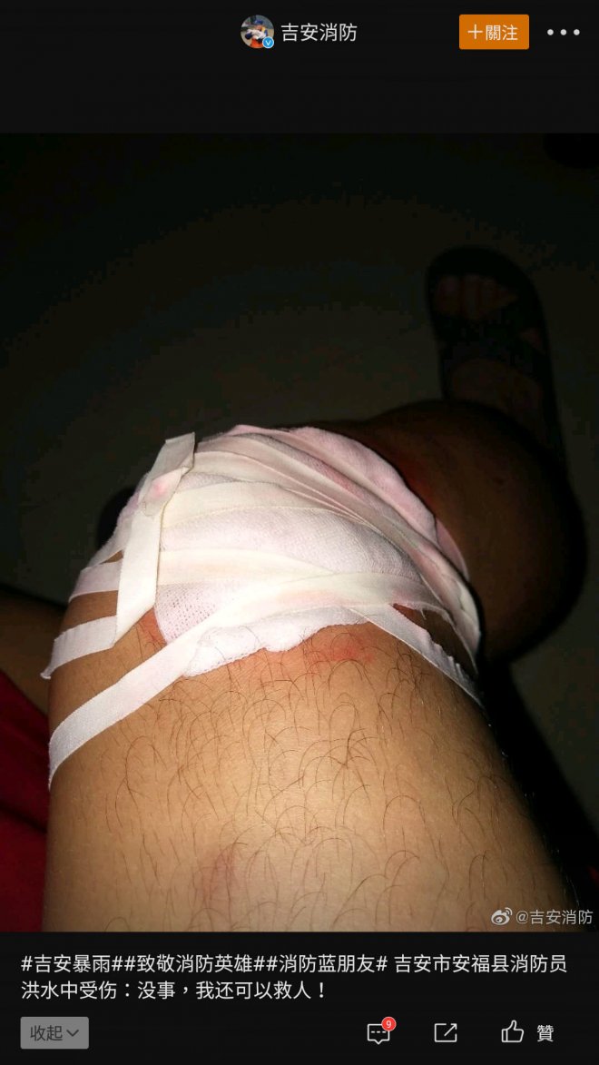 神通廣大的網友也立刻熱心地神出原照片出處,附上原本是大陸吉安消防員「救災受傷」的敬業照片和報導,真相照大白!