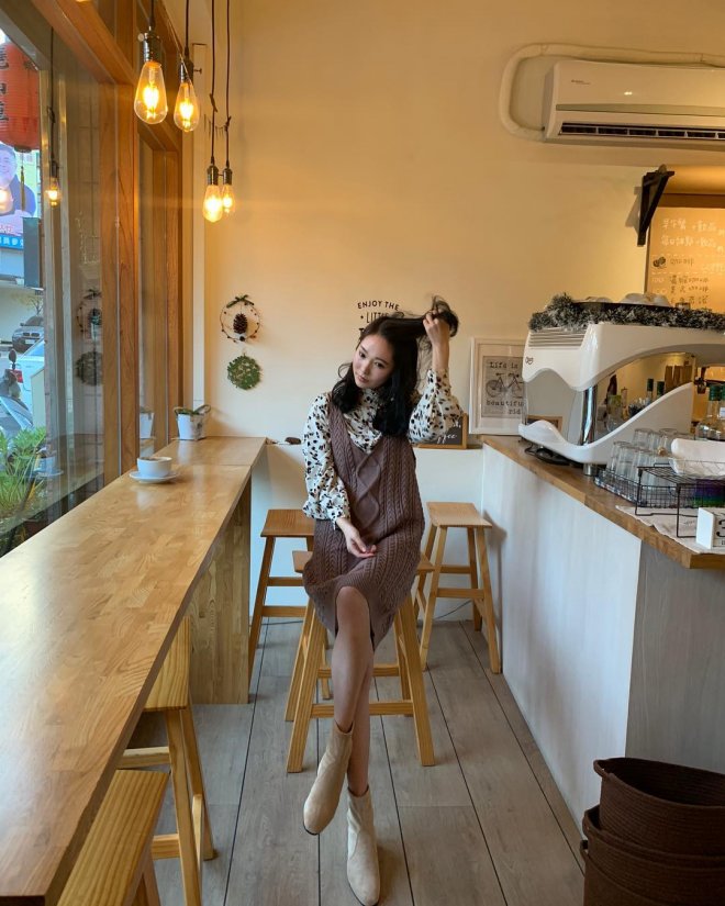 ,留著一頭空氣捲的中長髮,即使柔順的瀏海遮著半邊臉頰,還是看得見那小巧白皙的臉龐,那水汪有神的濃眉大眼很是迷人,雖然很少笑得燦爛,但那勻稱又姣好的纖瘦體態,再加上筆直又修長的美腿,一股傲骨的誘人氣息依然勾引著所有人!