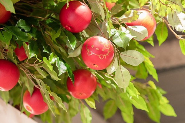 ▼看到門口Kitty捧著大大的蘋果了嗎,東京淺草店的主題就是「蘋果造型」啦,走進店舖就會看到到處都有蘋果造景。