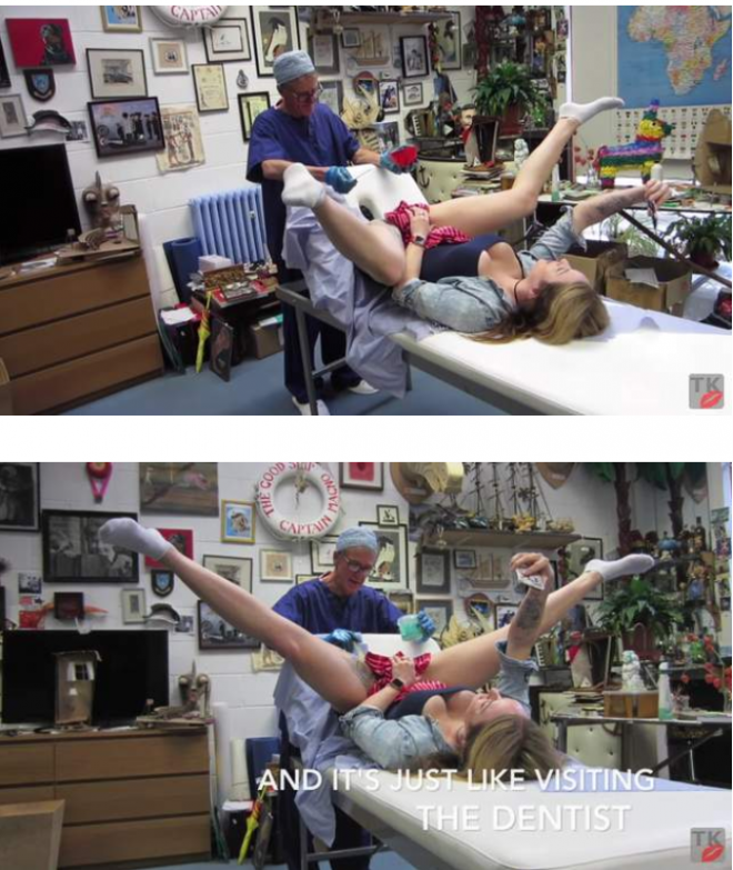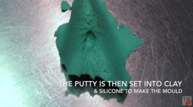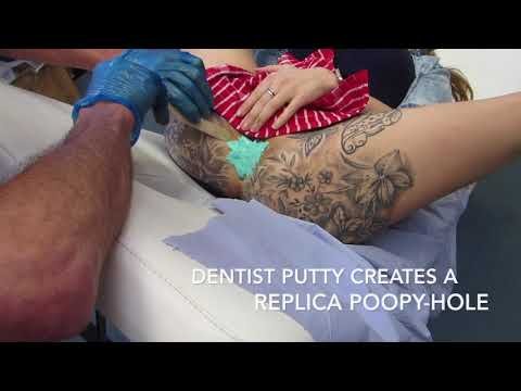 首先先拿取模用的塑土塗在客人的屁眼上,崔西對此表示好像在看牙醫喔~