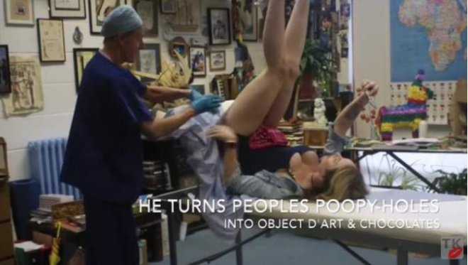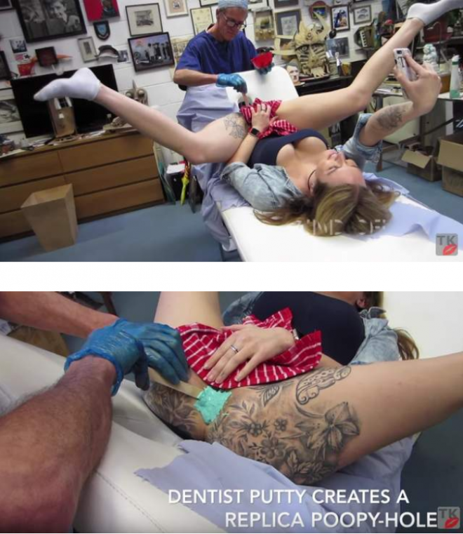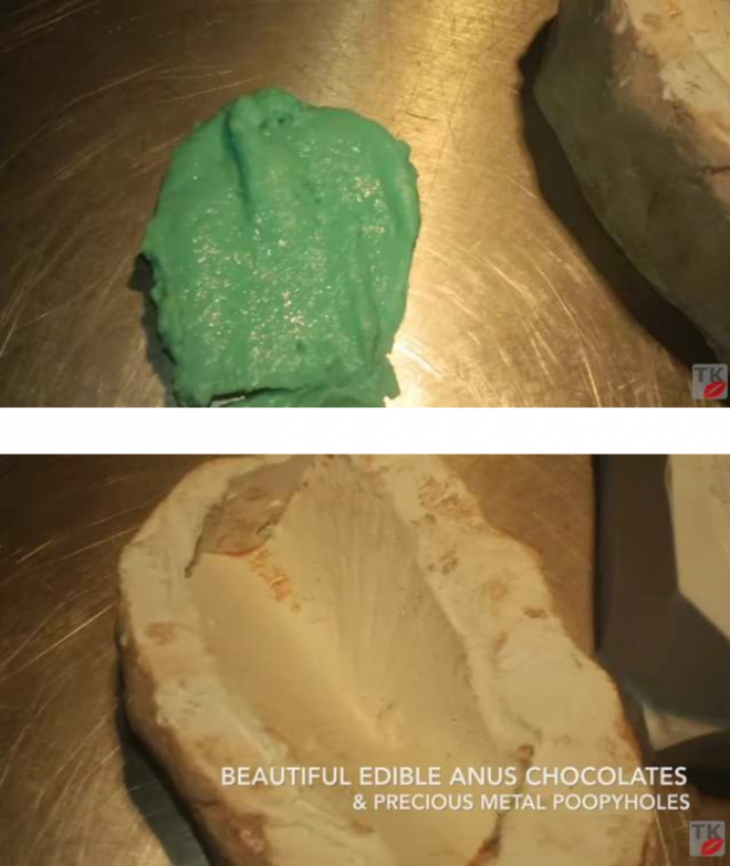這次她又來突破自我極限了?用完前面當然還要用後面,她這次為了給男友驚喜,決定和英國工作室「可以吃的肛門」合作,她需要躺在椅子上雙腿大開,工作室人員會幫忙替客人肛門取模,再用「客製形狀模具」做成巧克力。