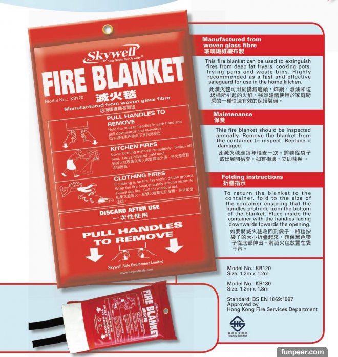 ♦SKYWELL 滅火毯♦100%已獲香港消防處檢定