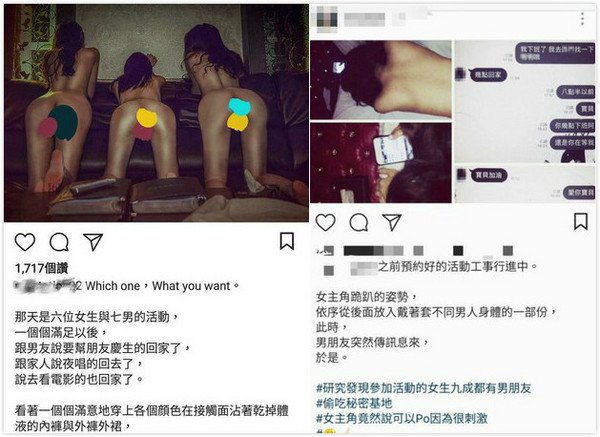 大一妹6女戰7男的事件越演越烈,除了有當事人跳出爆料男女各有另一半、群P有人染病、攝影師藉此賺錢之外,「綠帽男友們」也紛紛認出女友現身。