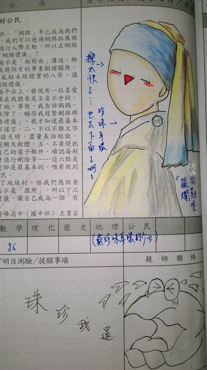 ▼有網友看了弟弟的聯絡簿後,也不甘示弱地公開「妹妹的聯絡簿」!