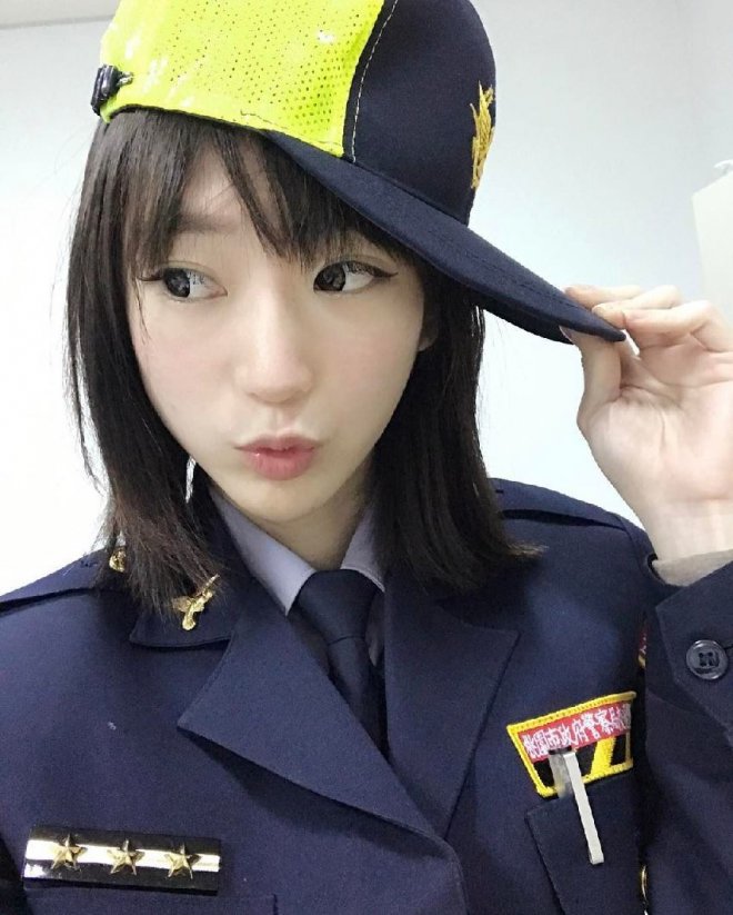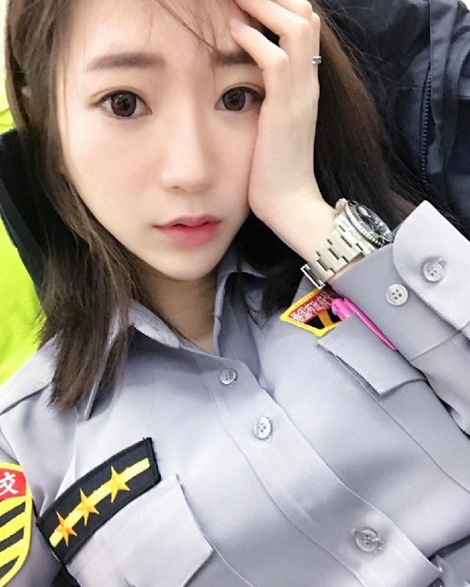 美麗的的她穿著制服就好像Cosplay的扮演者,其實她是一位貨真價實的警察。