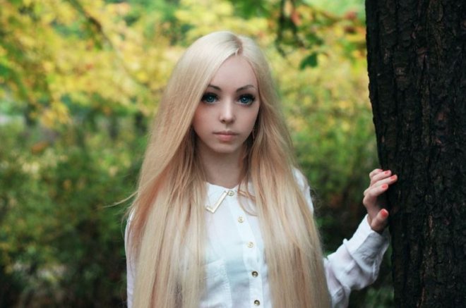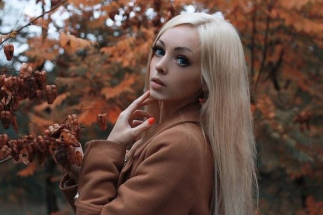 金髮碧眼、纖細身材和小巧精緻的臉蛋,透過化妝點綴,讓柯瓦列夫斯卡婭看起來和芭比更加相像。