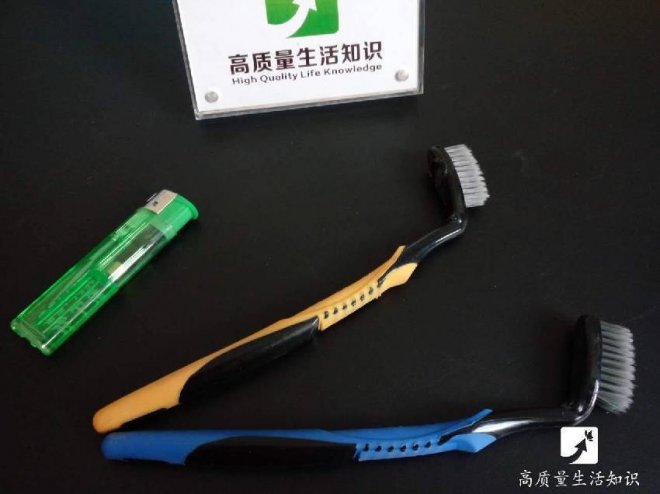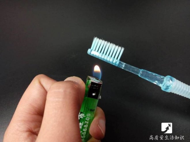 用打火機烤一烤牙刷頭的背面