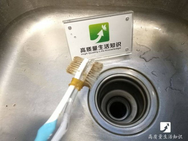 纏繞好的牙刷頭與洗碗槽的