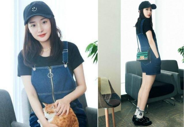 大冪冪不愧是「帶貨女王」,衣品從來沒有掉線過,說起黑T恤,小編想到的是搭配一條普通的牛仔熱褲,而大冪冪則用背帶熱褲來搭配,