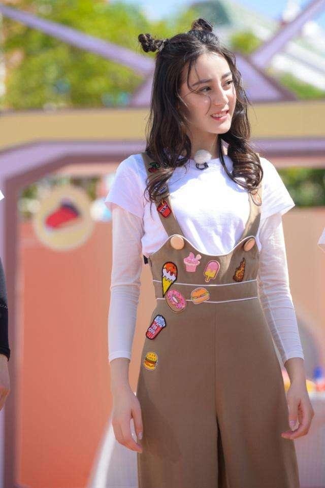 熱巴的背帶褲則顯得更加可愛,卡其色的闊腿背帶褲本來是輕熟feel,但是多了萌物的刺繡圖案則顯得童趣呆萌,精準狙擊到每個女孩的少女心,連下面的白T恤都顯得動人了不少。