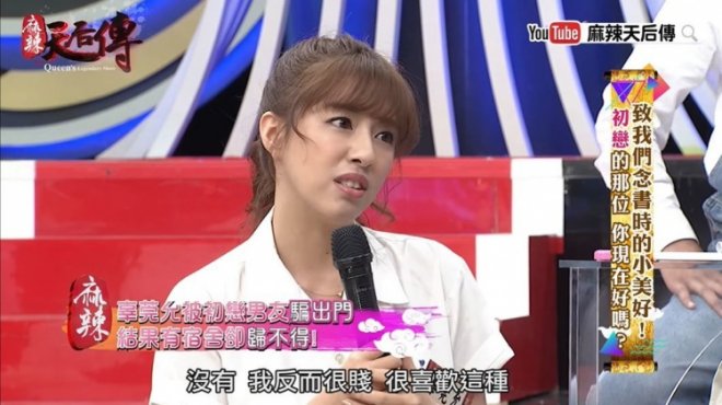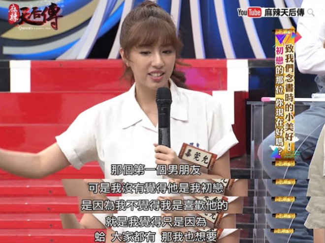 「那時候我有一個男朋友,可是我不喜歡他」,甚至不覺得對方是她的初戀,因為自己並沒有喜歡對方,只是因為看到同學都有男朋友,再加上對方的追求,