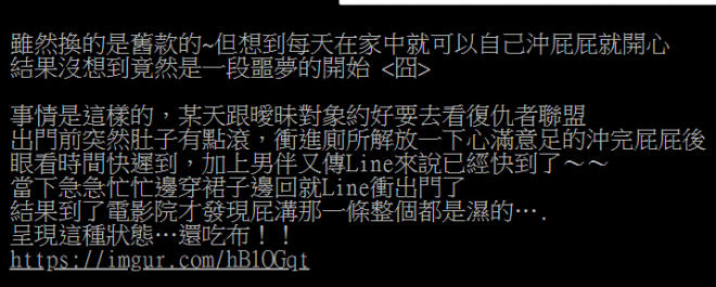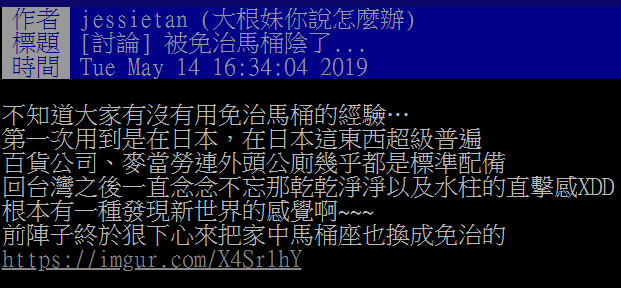 不過最近有網友發文表示自己被免治馬桶陰慘了
