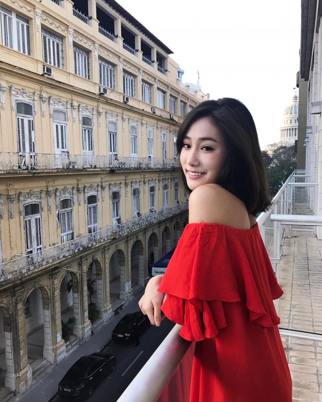 ,有著深邃又精緻的五官,一雙偌大的電眼魅力有神,笑容燦爛又甜美,一身白皙稚嫩的肌膚,還有凹凸有致的好身材,細長的美腿馬上吸引所有人的目光,把腿控們的慾望拉到最高點!
