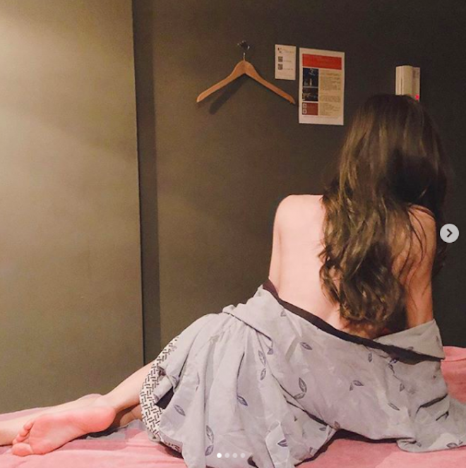 曹媛媛不只是面容姣好,身材也是好厲害的那種呢!穿著紅色蕾絲小睡衣側趴在床上,那個畫面實在香豔刺激,有種慵懶的美感和若隱若現的性感~不過「內在美」之所以美,大概就是為了讓它露出來的時候也超好看那樣,前陣子曹媛媛跑去幫某店面拍小短片,露背上衣就秀出紅色的蕾絲內衣啦!看起來真的不得了!