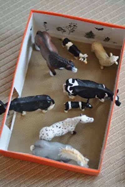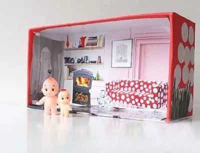 巧手裝飾一下,舊鞋盒就變身成各種情景的過家家遊戲盒,很有愛。