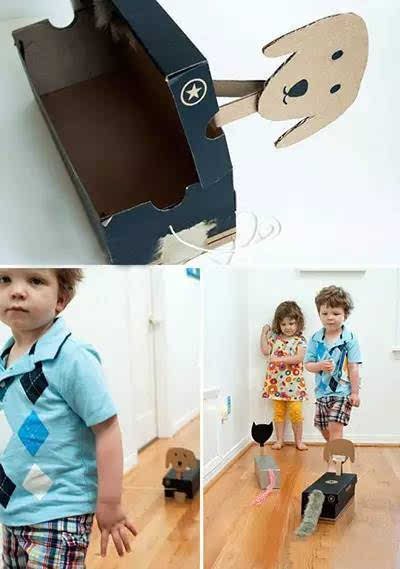 這個用鞋盒改制的拉線小狗,孩子們拉著一定非常興奮。