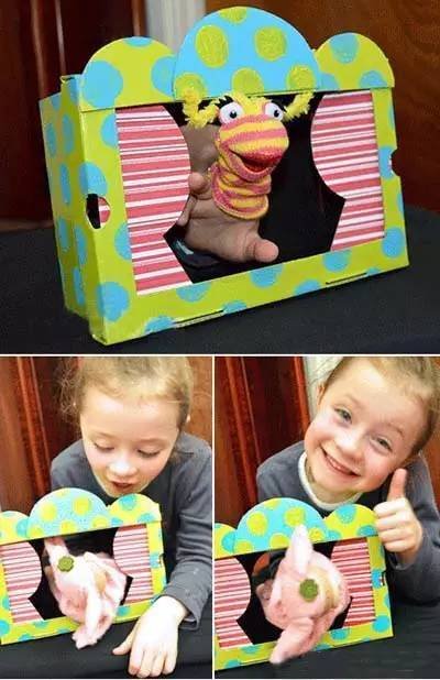 這是個迷你小劇院,孩子們表演情景劇的好道具。有了它,父母就可以安然地享受奶聲奶氣、繪聲繪色的表演了:)