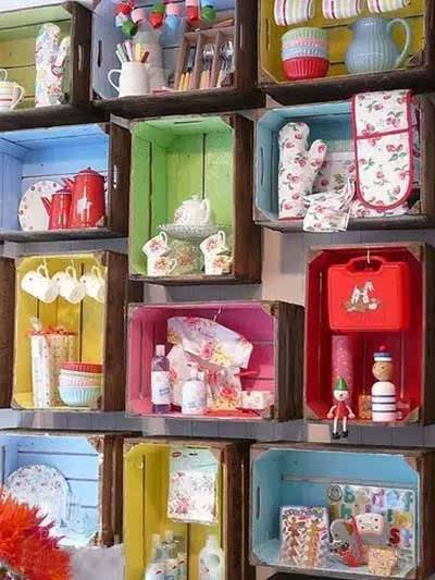 收納展示架:將高高低低的鞋盒掛在牆上,這是絕好的展示陳列架,分類收納孩子的各種物品,一目了然。