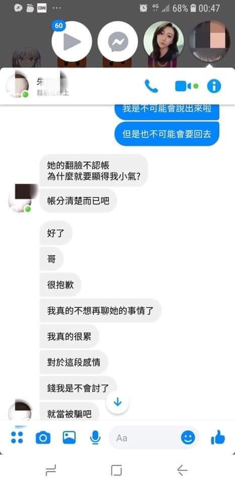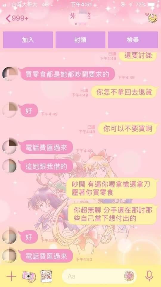 他說:那邊也很少用啊!我:⋯⋯⋯。(後面我自己擦了)第二:因為車牽去修配廠換東西,所以他好幾天沒上班我就問他,你幹嘛不上班,幹嘛不開你家的車?他說:車隊是綁車牌的,沒辦法臨時換車。就這樣過了5-6天吧,我當天東西其實也沒收得很乾淨,因為我還沒打算要分手,我只是把一些我在家會用到的帶回家,畢竟我也有留衣服在他家。我下樓準備回家時看見他爸媽叫我吃飯,於是我也是像平常一樣坐下來跟他們一起用餐。然後呢~是我最在意的衛生問題你刷牙不用牙膏,說牙膏涼涼的會想吐啊,去汽x的時候牙膏也是涼的啊你怎麼沒吐?起床不刷牙,連吃飯前都不刷牙?你是想到才刷嗎?知道自己嘴多臭嗎?第三:我最受不了自大還有不自覺的人!!對,我說過我不在意前女友,不過不在意就代表你照片可以一直放在那邊?這是對現任的尊重!一句:你說不在意!就能了事囉?還有我叫你減肥你說什麼呀?:我以前就這麼胖再減也是這樣!好笑了!我看過多少原本胖的人瘦下來?沒自知之明還以為這樣胖的很可愛哦?分手之後他跟我要零食費?跟我閨蜜說是我吵鬧要求的?不好意思耶,還讓你說謊了…我們去好市多還有你一個朋友,要我在這裡召喚他嗎?我記得你說那句:想吃就拿?還是喜歡就拿?忘記了,不過你朋友應該是有聽到的哦!啊還有全聯?我明明是說 想買一些餅乾看電影可以吃,我也忘記多少錢了啦!再來是乳液費我的背很乾 ,所以你要我買乳液,說你要幫我擦…ok我買了結果忘記因為什麼事情我想分手你去領貨這件事情請看截圖。啊我擦了你都沒碰到我囉?再來是包包一個超大的狗頭包他說那是他本來要送別人的,但是沒送出去,我生日要到了所以送我,我覺得我是很有度量的人我沒有計較他想送誰….結果分手之後你說什麼啊?包包不要我還,要折現?憑什麼?你拿送別人的送我,我還得給你錢?再來是電話費 ~首先,我並沒有不想還!但是朱先生跟我朋友說:零食是我吵鬧要求的!因為你這句話,我請你為了這2500告我吧,我沒打算要給你了。怎麼可以因為自己站不住腳,就說謊騙人?電話費的事情呢我也是自損的說了,xx5次也夠抵了。於是呢他問我把自己當成什麼我才想問你把自己當成什麼吧?我見人說人話 見鬼說鬼話見垃圾說垃圾話啊!結果後來一個先生追蹤他自己去密人家,叫人家哥,跟人家說:我給人家x也無所謂?:我靠身體賺錢?我真的很想問你欸我今天是花你30萬50萬了?你有沒有品德啊?套一句國中生的:你是禮義廉嗎?反正你的行為就像國中生~笑掉人的大牙~昨天還說什麼記得我前面懶得擦乳液嗎?記得我睡覺怎樣的嗎?說有偷拍我的裸.照?然後又收回?你要不要臉啊大哥?偷拍是一件很光榮的事嗎?我請你發出來,讓大家看一下你多光榮!請問一下你是男人嗎?你有風度嗎?你有氣魄嗎?你有自尊嗎?你有自覺嗎?憑什麼我不說話你就覺得我好欺負哦?得寸進尺耶!我都沒說跟你怎樣是我今生恥.辱了!至於他以前女友的私密照我就不說了啦,這也是我強調要他刪照片的理由。我的照片不是什麼私密照就是一些我會發,比較露的照片還有~不想讓人家知道我跟這種人在一起過!閱讀全文