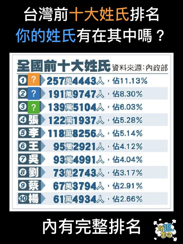 台灣前十大姓氏,你的姓氏有在裡面嗎?這個姓氏將可能消失!?