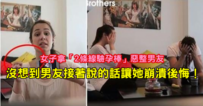 女子拿「2條線驗孕棒」惡整男友,沒想到男友接著說的話讓她崩潰後悔!